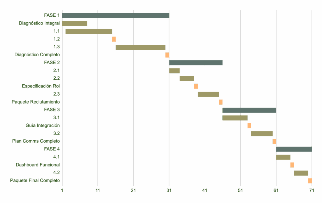 Nuestra promesa es una hoja de ruta clara, medible y ejecutable que mitiga riesgos socio-culturales y maximiza la probabilidad de una integración exitosa desde el día uno.